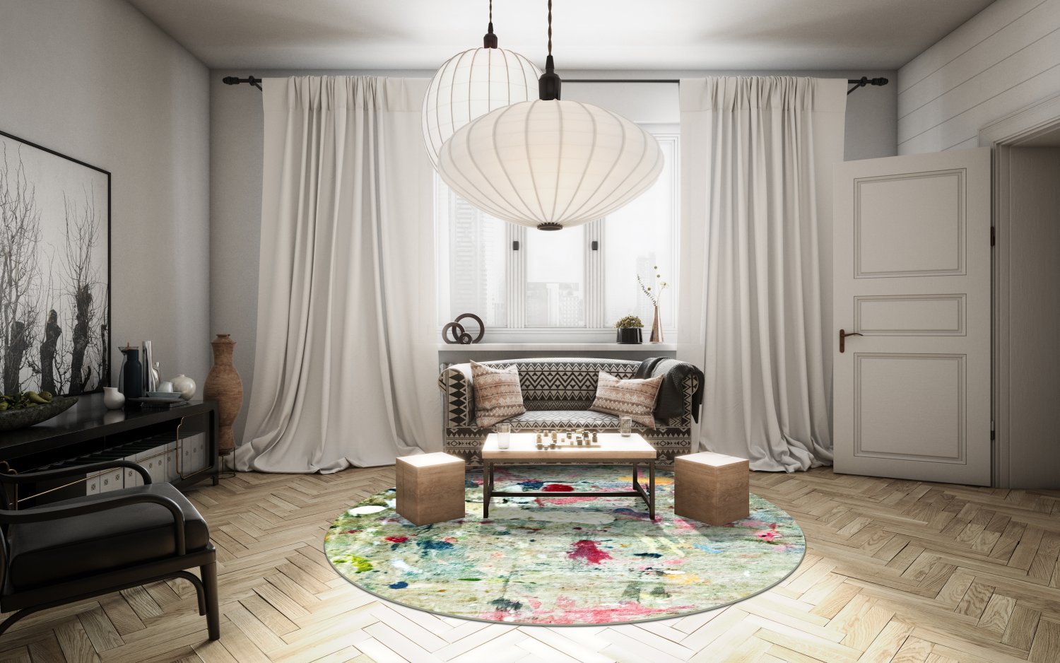 Tapis rond - Satriano (gris/multi)